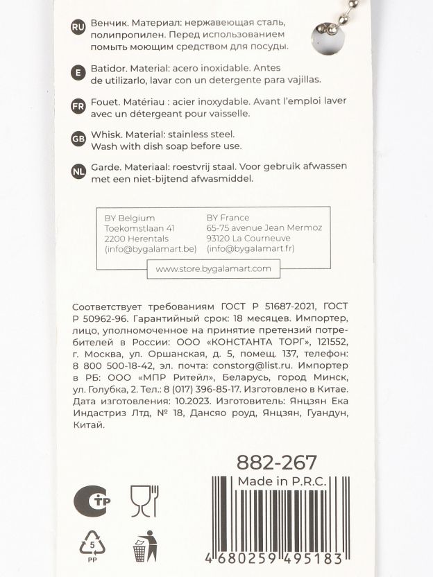 Венчик изготовлен из нержавеющей стали, устойчив к коррозии и механическим повреждениям, рассчитан на длительное использование без потери внешнего вида и функциональности.