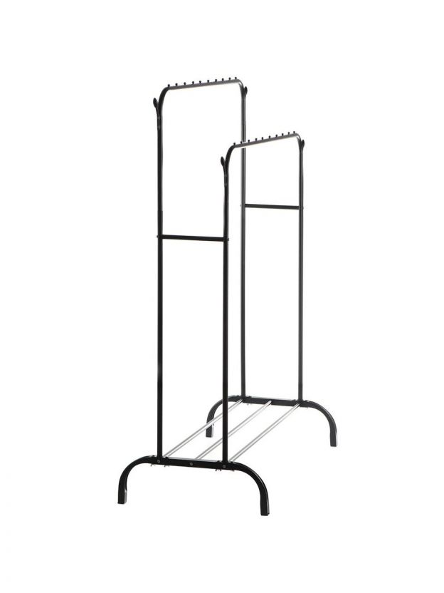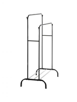 Вешалка напольная 110х55х150 см, Aqwin, металл, полка для обуви, 45 кг, Элит, VPF66, черная, двойная, с вешалками