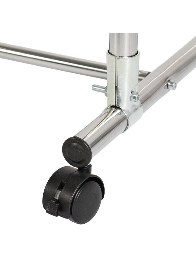 Вешалка 120х100х50х150 см из металла подойдёт для гардеробной любой площади: она вместительна, устойчива, не требует крепления к стене, оснащена рейлами для разных типов одежды.