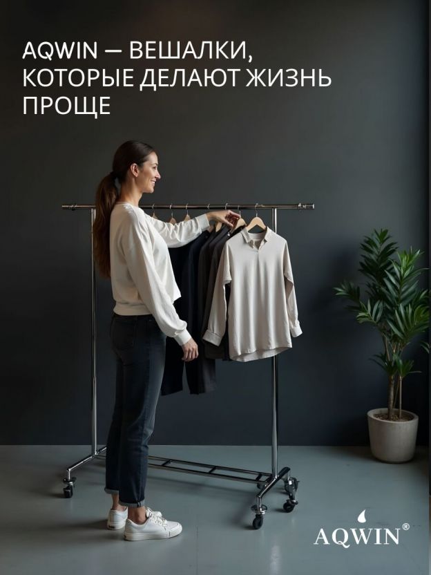 Если вы ищете, какую напольную вешалку купить недорого для дачи или компактной квартиры, обратите внимание на Aqwin: она не требует монтажа к стене, легко разбирается и транспортируется. Подходит для хранения брюк, галстуков, ремней, юбок и шарфов — оптимальный выбор для сезонной смены гардероба и организации пространства.