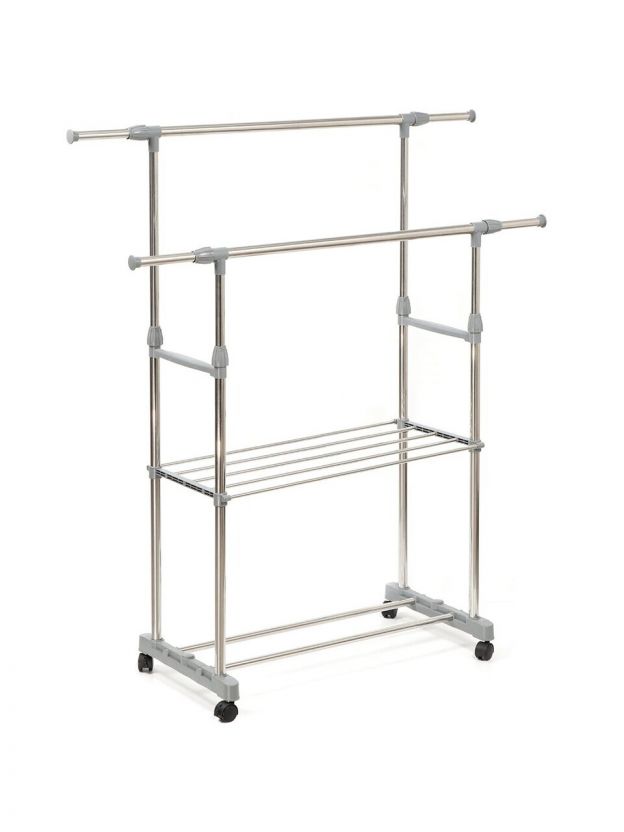 - Прочный металл, выдерживает до 40 кг, подходит для хранения верхней одежды, костюмов, аксессуаров