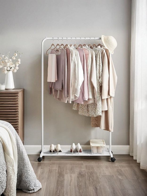 Вопросы «какая вешалка лучше для коридора» или «что выбрать для компактного хранения одежды» часто возникают у покупателей. Songmics HSR025W01 выигрывает за счёт мобильности и универсальности: подходит для верхней одежды, юбок, брюк, галстуков и ремней. В отличие от аналогов без колёс и полки для обуви, эта модель решает сразу несколько задач. Если вы ищете, как выбрать напольную вешалку для дачи или квартиры — обратите внимание на прочность металла, устойчивость и простоту сборки.
