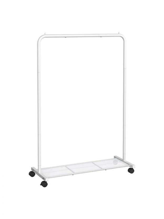 Вешалка напольная 90.5х40.5х158 см, Songmics, металл, с колесами, полка для обуви, 50 кг, Лофт, HSR025W01, белая
