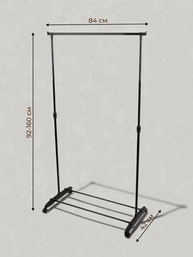 Габариты: 80x42 см, высота регулируется от 92 до 160 см. Это удобно для одежды разной длины, включая платья и пальто.