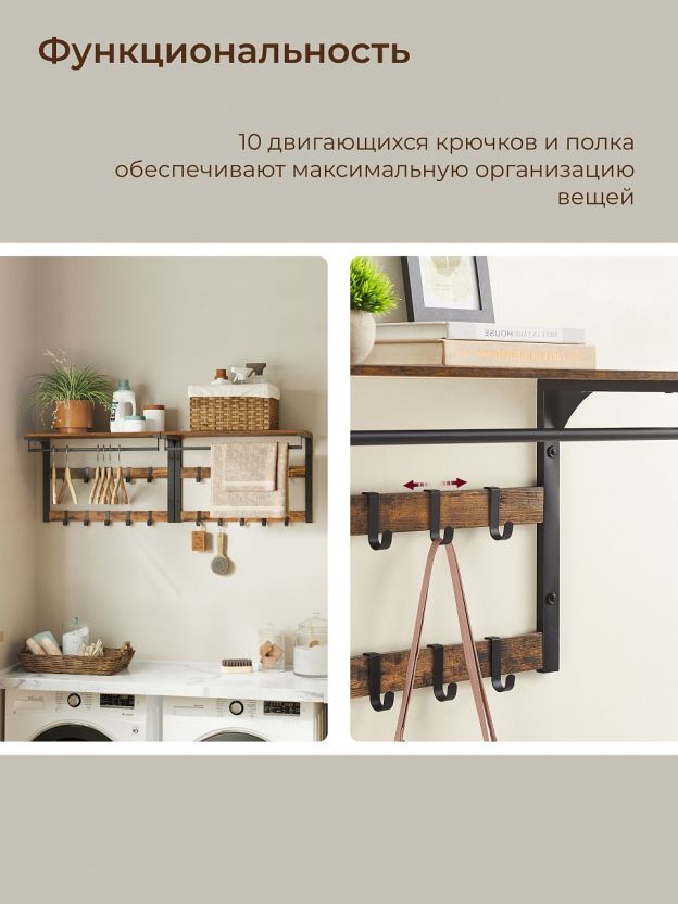 • Функциональность и удобство: 10 крючков и полка обеспечивают максимальную организацию вещей.