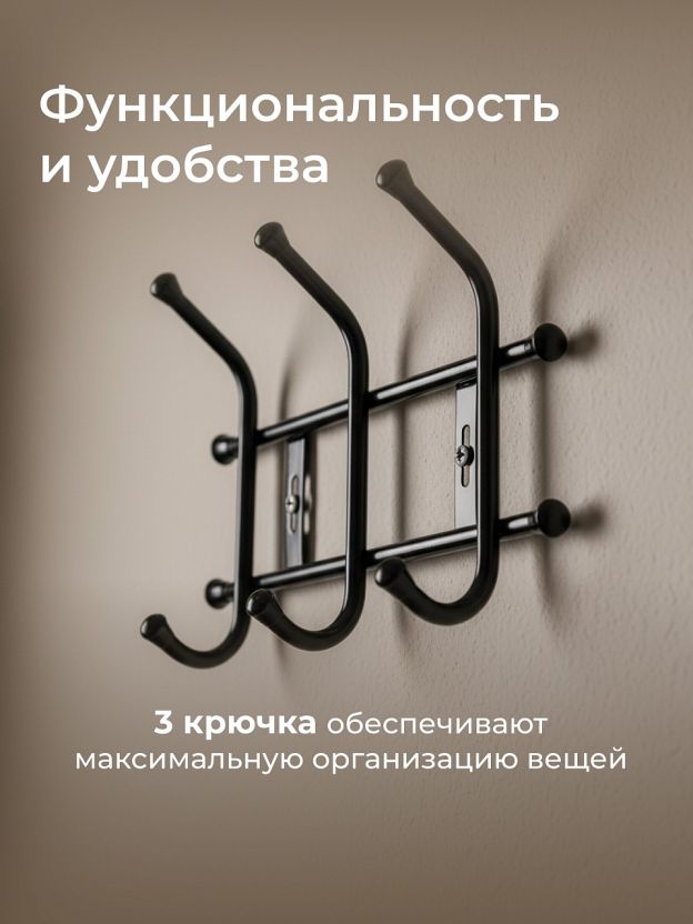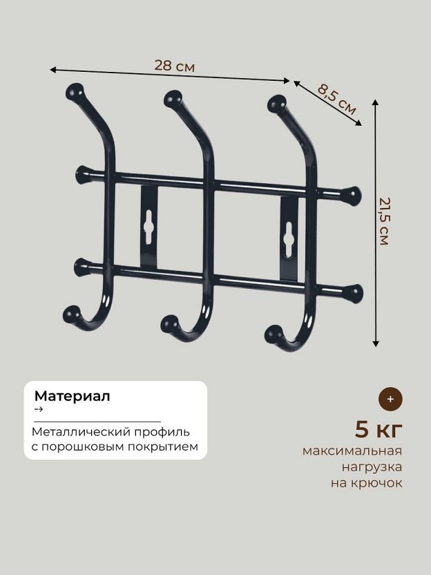 Ищете стильное и функциональное решение для хранения одежды? Настенная вешалка с 3 крючками от бренда Nika станет идеальным выбором для вашего интерьера. Изготовленная из прочного металла, она выдерживает нагрузку до 5 кг на каждый крючок, обеспечивая надежность и долговечность. Черный цвет добавит элегантности в любое помещение.