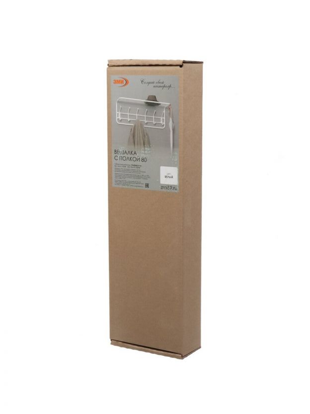 Вешалка настенная 6 крючков, с полкой 80, 22х73х26.5 см, сталь, ЗМИ, ВСП80Б, белая