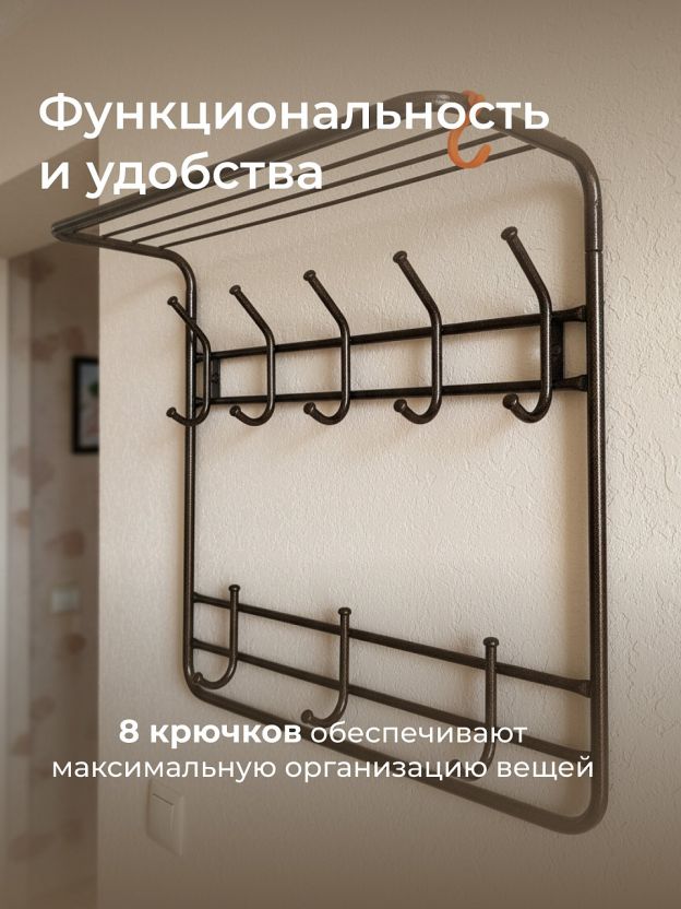 Вешалка настенная 8 крючков, 2-х ярусная, с полкой, 60х22х58 см, ЗМИ, ВСП 8, черная