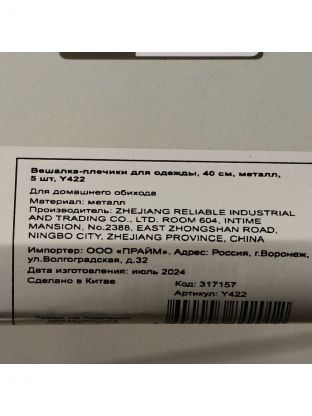 Вешалка-плечики для одежды, 40 см, металл, 5 шт, в ассортименте, Y422