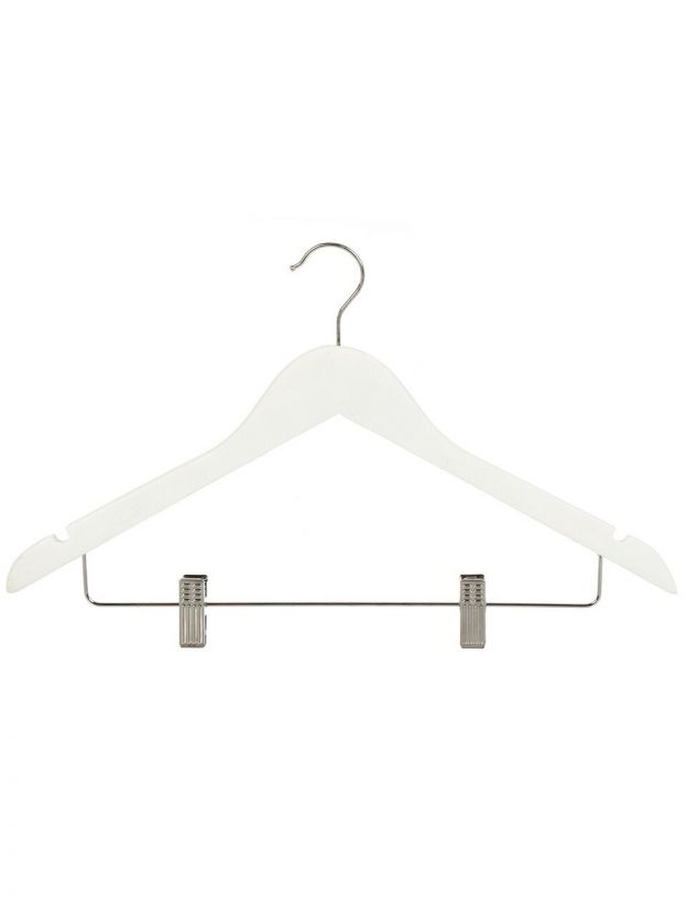 Вешалка-плечики для одежды, 44.5 см, дерево, клипсы, белая, Марья Искусница, LH002W-CL