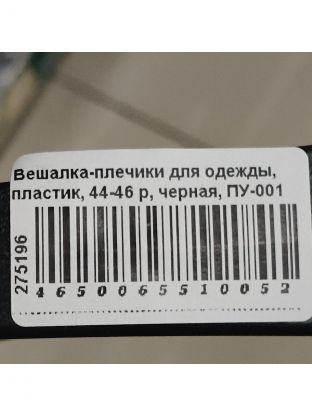 Вешалка-плечики для одежды, пластик, 44-46 р, черная, ПУ-001