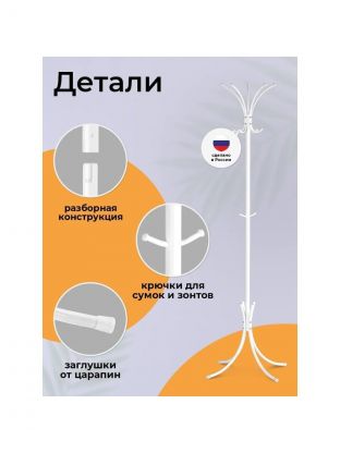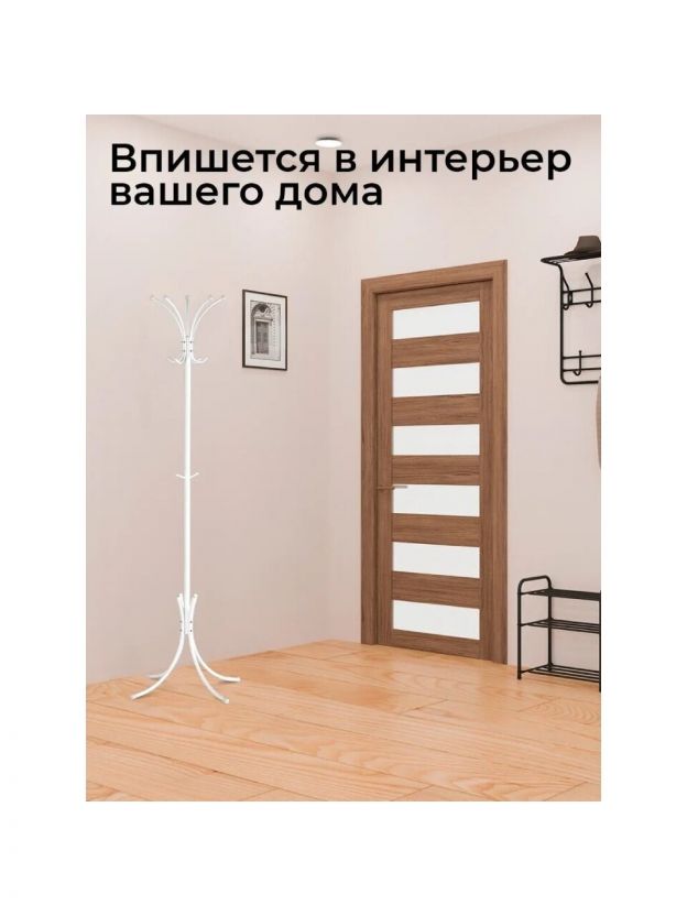 Вешалка-стойка ЗМИ Корона — оптимальный выбор для тех, кто ищет, какую напольную вешалку купить недорого для дачи или квартиры. Благодаря разборной конструкции и классическому белому цвету, эта модель отлично впишется в любой интерьер, обеспечивая порядок в прихожей или гардеробной. Стальная стойка выдерживает до 25 кг — вы можете разместить верхнюю одежду, аксессуары, ремни и даже тяжелые пальто, не опасаясь деформации.