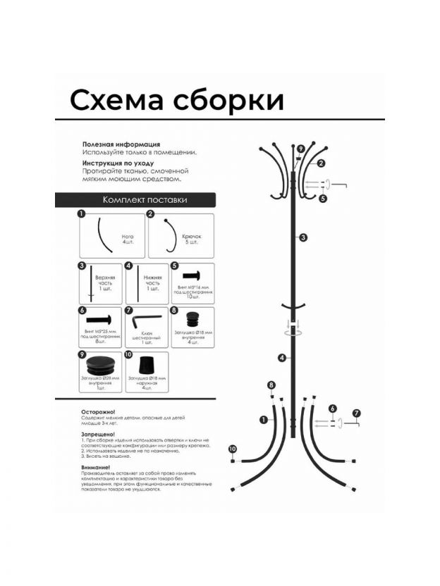 - Уникальный дизайн «Корона» — компактная стойка с 5 крючками для одежды, ремней, шарфов и галстуков
