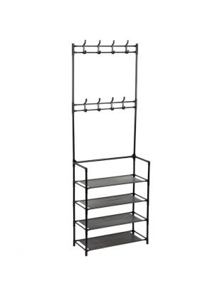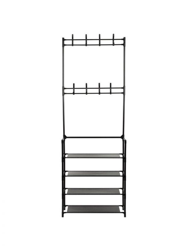 Вешалка-стойка напольная 60х27х170 см, полка для обуви, 15 кг, 104924, черная, 4 полки, 8 крючков