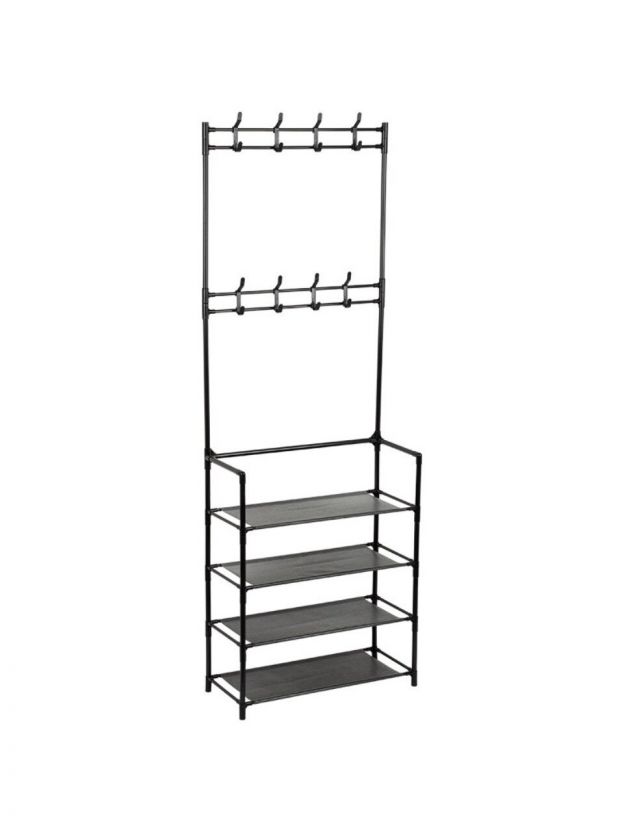 4 полки подходят для обуви и аксессуаров, 8 крючков — для курток, брюк, юбок, шарфов, ремней, галстуков и верхней одежды.