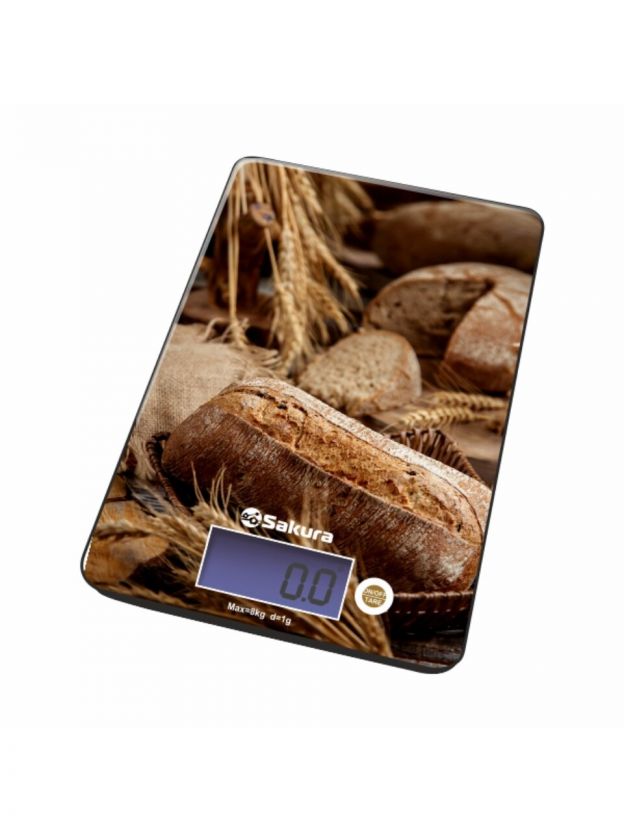 Весы кухонные электронные, стекло, Sakura, платформа, точность 1 г, до 8 кг, хлеб, SA-6075BR