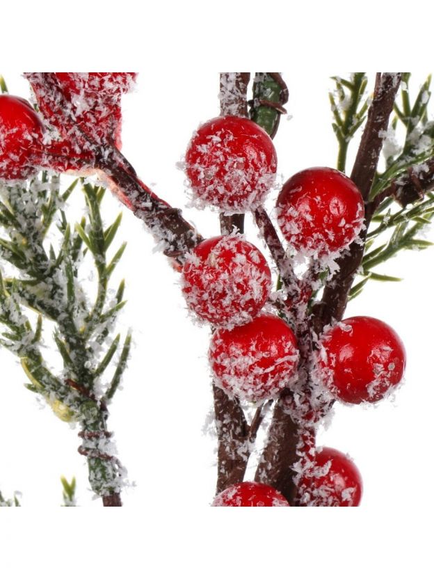 Ветка декоративная 44 см, еловая, заснеженная, с декором, Y4-8516
