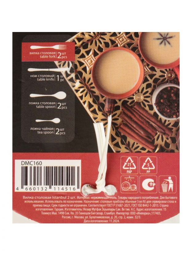 Вилка нержавеющая сталь, 2 предмета, столовая, Domenik, Istanbul, DMC160