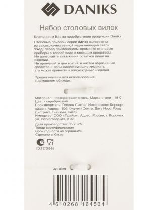 Вилки Daniks Strict не требуют особого ухода, устойчивы к повреждениям и подходят для ежедневного использования — оптимальный вариант для дачи или небольшой семьи.