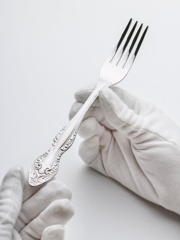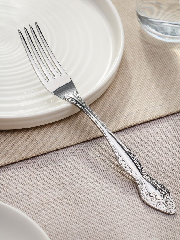 Вилка выполнена из пищевой нержавеющей стали, не подвержена коррозии и подходит для мытья в посудомоечной машине без потери внешнего вида.