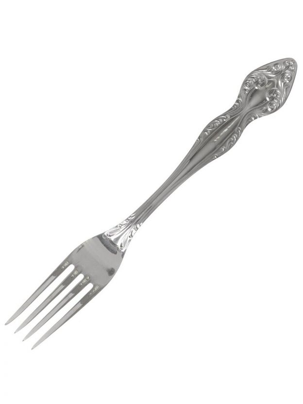 Длина вилки — 19,5 см, фигурная металлическая ручка с художественной росписью, рассчитана на одну персону, стиль — классический, цвет — серебристый.