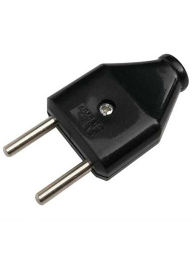 Вилка прямая, без заземления, 6 А, IP20, 250 В, черная, General Lighting Systems, 470507