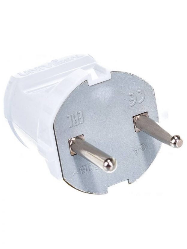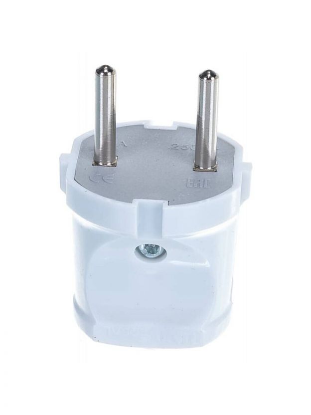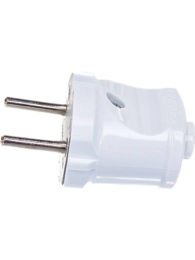 Вилка прямая, без заземления, 6 А, IP20, 250 В, еврослот, белая, UNIVersal, А113