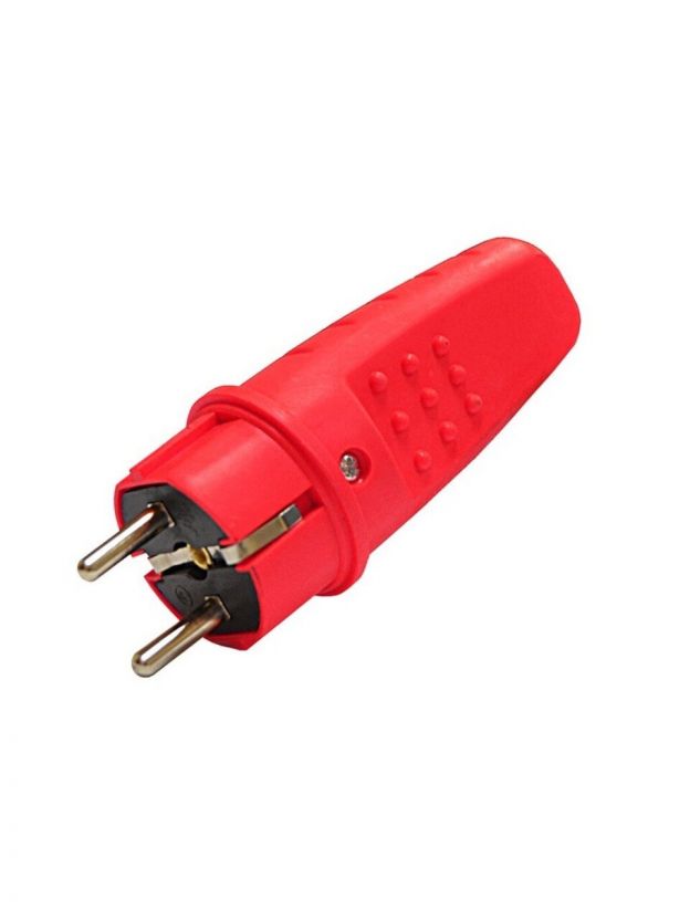 Вилка прямая, с заземлением, 16 А, IP44, 250 В, однофазная, каучук, красная, UNIVersal, 3079