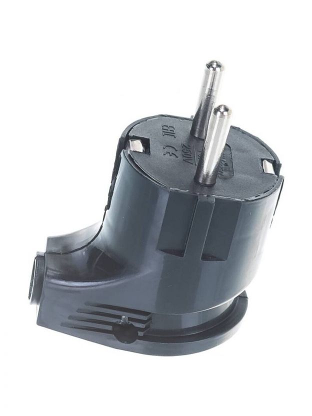 Вилка угловая, с заземлением, 16 А, IP20, 250 В, еврослот, черная, UNIVersal, A0105