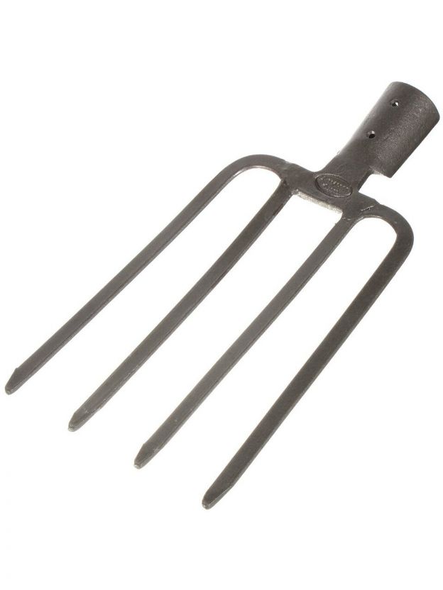 Вилы четырехрогие выполнены из закаленной стали. Заостренные зубцы легко проникают в грунт, снижая нагрузку на ногу.
