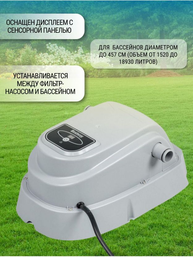 Совместим с фильтр-насосами производительностью 3785 л/ч или меньше.