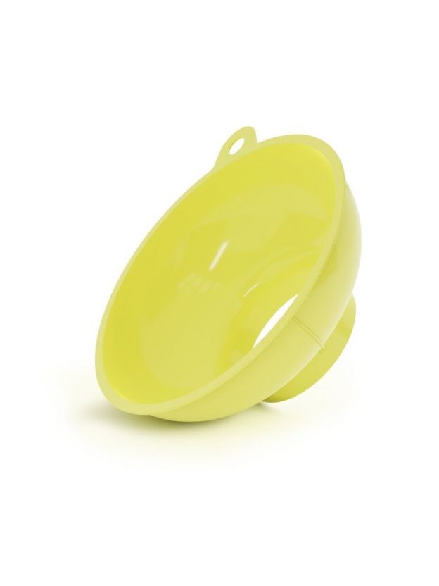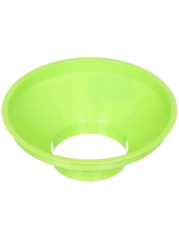 Воронка является приспособлением для переливания жидкости. Изготовлена из качественной пластмассы, имеет плотные стенки, хорошо моется, не впитывает в себя посторонние запахи. Данный вид воронки имеет широкое горло и кромку по краю в размере 1 см, что дает возможность переливать через такую воронку большой объем жидкости, не опасаясь, что жидкость может перелиться через края воронки. Подходит, по размерам горловины, для стеклянных банок, канистр, бочек. Выполнено изделия в нескольких цветовых вариантах, пригодно для использования с пищевыми продуктами.