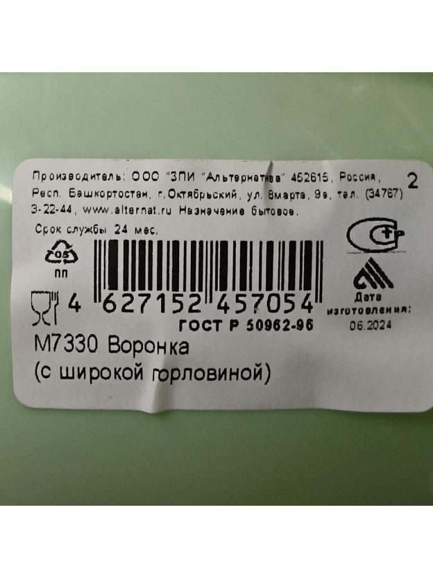 Воронка пластиковая Альтернатива М7330 с широким горлом, 15 смОписание