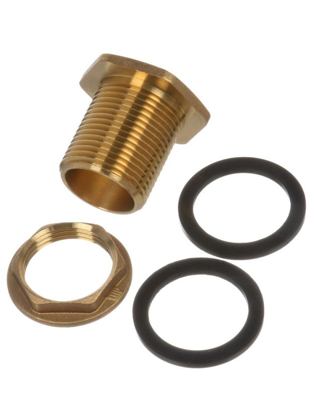 Врезка для бочки, 1", латунь, с контргайкой, СантехКреп