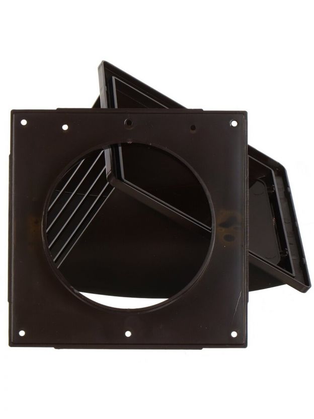 Выход стенной пластик, вытяжной, 175х175 мм, с обратным клапаном, с фланцем D120, коричневый, Event, 175К120ФВ кор