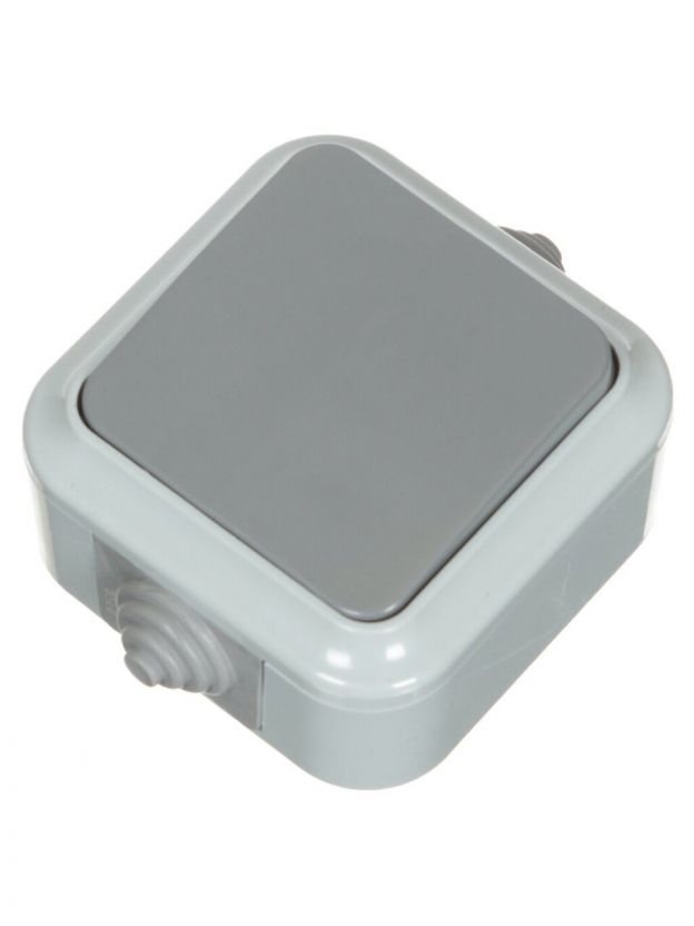 Выключатель одноклавишный, с заземлением, 250 В, пластик, IP54, серый, А1 6-222/03, БП000000695