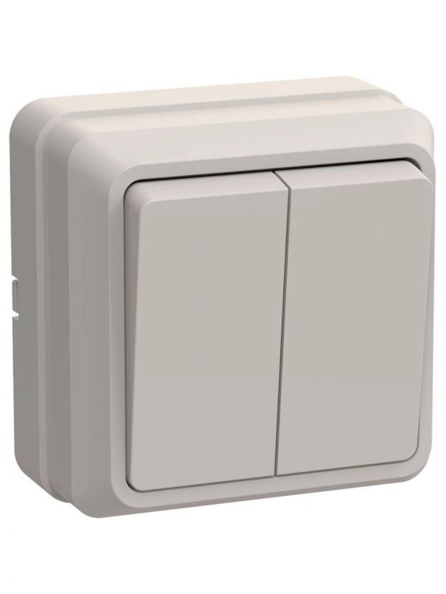 Выключатель открытой установки, двухклавишный, 10 А, 250 В, пластик, IP20, кремовый, IEK, ВС20-2-0-ОКм Октава, EVO20-K33-10-DC