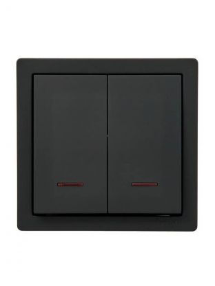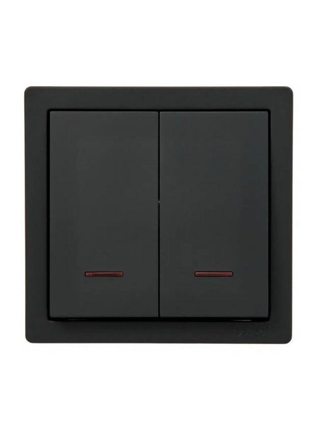 Выключатель открытой установки, двухклавишный, без заземления, 10 А, 220 В, пластик, подсветка, IP20, черный, Lezard, Leto, 752-4200-112