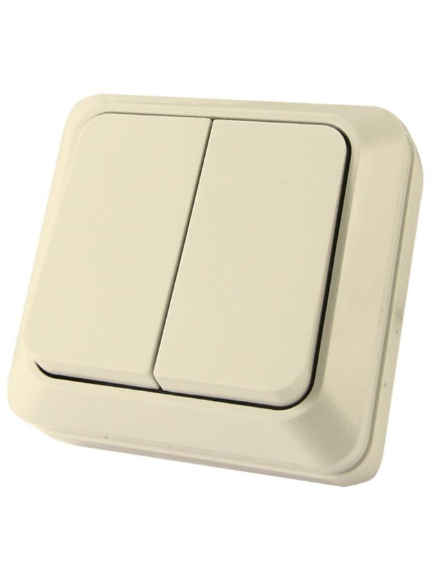 Выключатель открытой установки, двухклавишный, без заземления, 10 А, IP20, слоновая кость, TDM Electric, Ладога, SQ1801-0004
