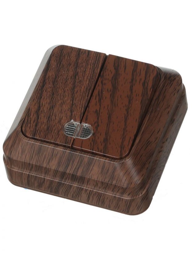 Выключатель открытой установки, двухклавишный, без заземления, 10 А, подсветка, IP20, бук, TDM Electric, Ладога, SQ1801-0030
