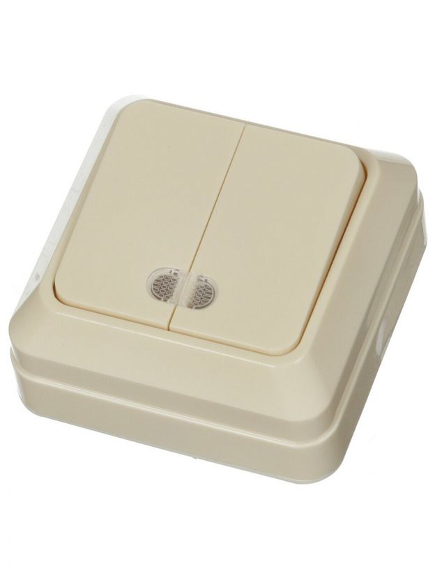 Корпус прибора изготовлен в необычном цвете - слоновая кость, что будет изящным дополнением для самых разнообразных интерьеров, имеет подсветку - светодиод (LED), позволяющую быстро находить выключатель в темное время суток. Комплектация - в сборе с корпусом. Способ монтажа - открытой установки.