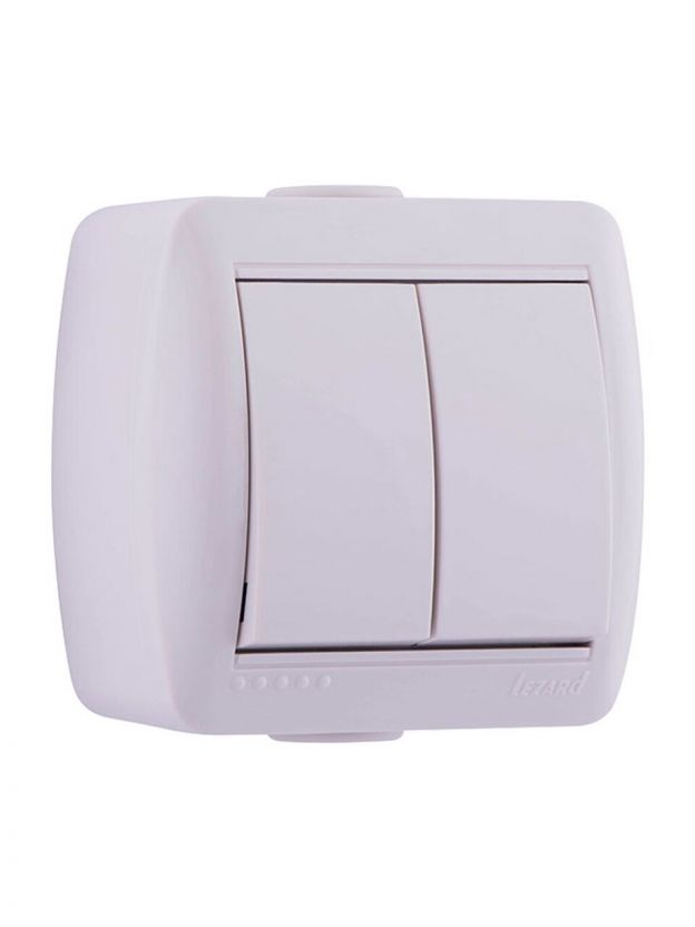 Выключатель открытой установки, двухклавишный, без заземления, керамика, белый, Lezard, Nata, 710-0200-101