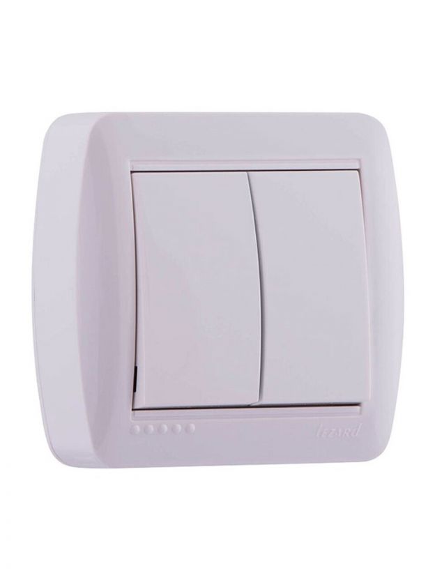Выключатель открытой установки, двухклавишный, без заземления, пластик, белый, Lezard, Demet, 711-0200-101