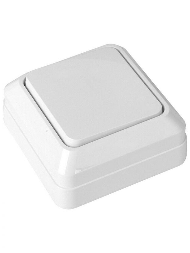 Выключатель открытой установки, одноклавишный, 10 А, термопластик, IP20, белый, General Lighting Systems, Альфа, 477000