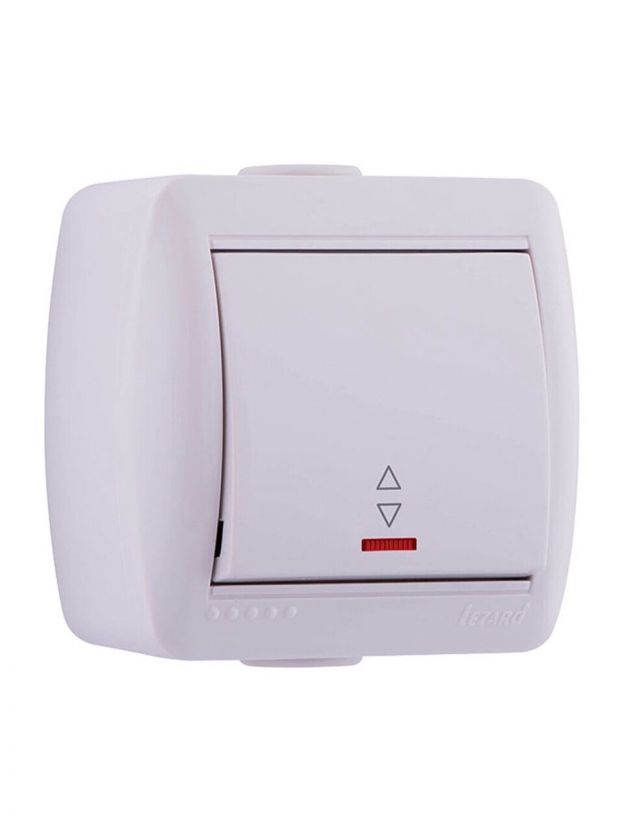 Выключатель открытой установки, одноклавишный, без заземления, керамика, подсветка, белый, проходной, Lezard, Nata, 710-0200-114