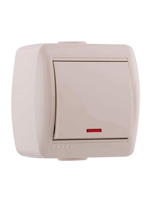 Выключатель открытой установки, одноклавишный, без заземления, керамика, подсветка, кремовый, Lezard, Nata, 710-0300-111