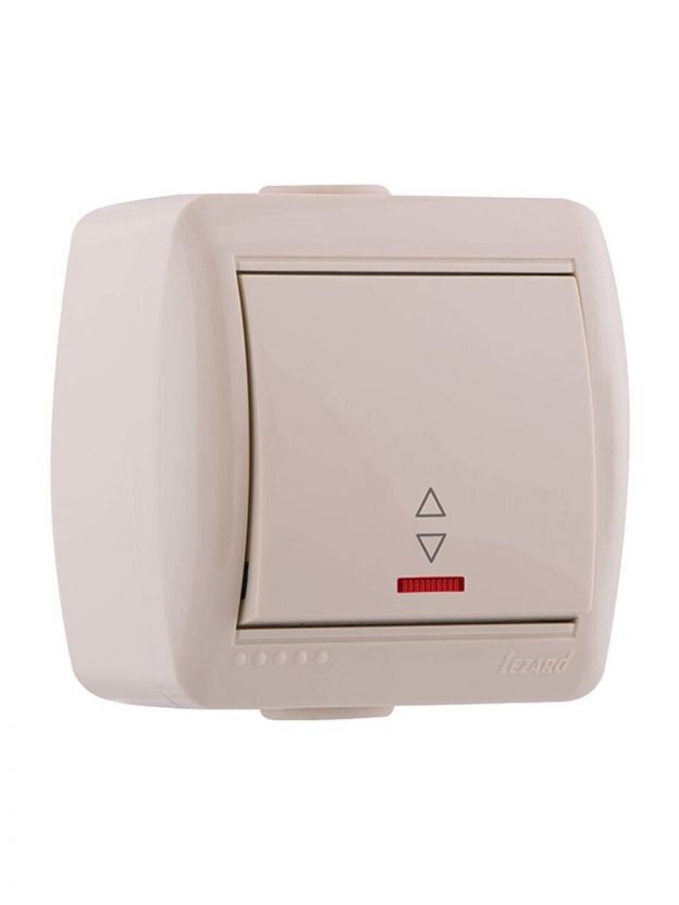 Выключатель открытой установки, одноклавишный, без заземления, керамика, подсветка, кремовый, Lezard, Nata, 710-0300-114