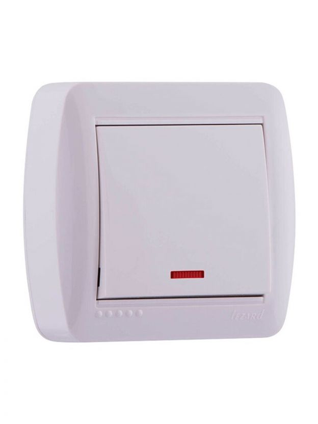 Выключатель открытой установки, одноклавишный, без заземления, пластик, подсветка, белый, Lezard, Demet, 711-0200-111