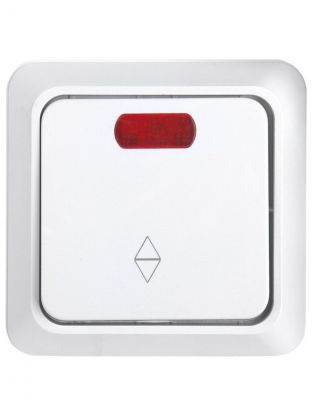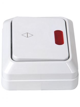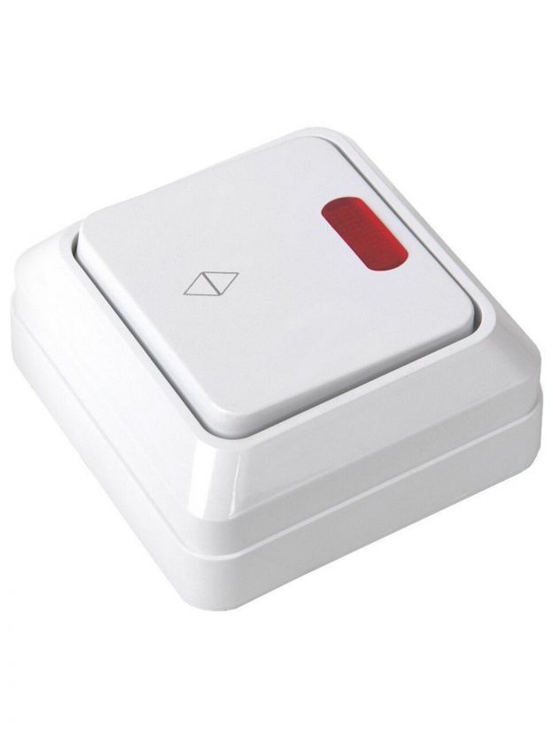 Выключатель проходной открытой установки, одноклавишный, 10 А, термопластик, подсветка, IP20, белый, General Lighting Systems, Альфа, 477005