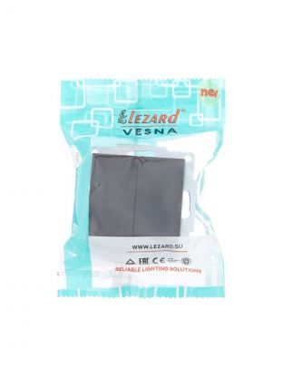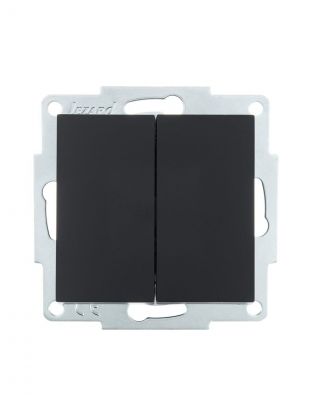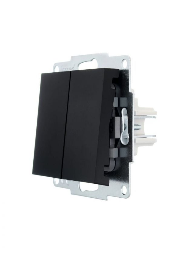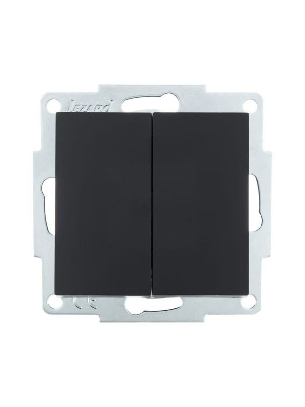 Выключатель скрытой установки, двухклавишный, без заземления, 10 А, 250 В, пластик, IP20, черный бархат, Lezard, Vesna, 742-4288-101